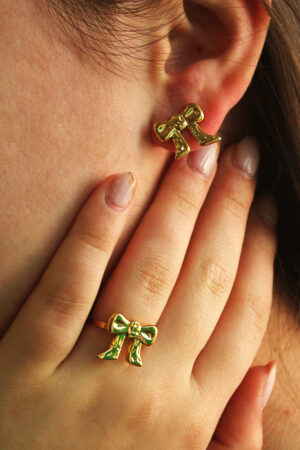 Conjunto de Anel ajustável e Brincos – Laço Romântico